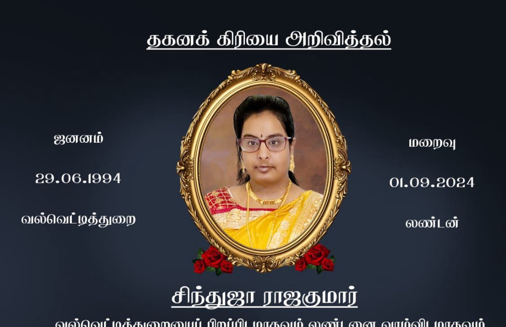 இறுதிக்கிரியைகள் – அமரர் செல்வி சிந்துஜா ராஜ்குமார்