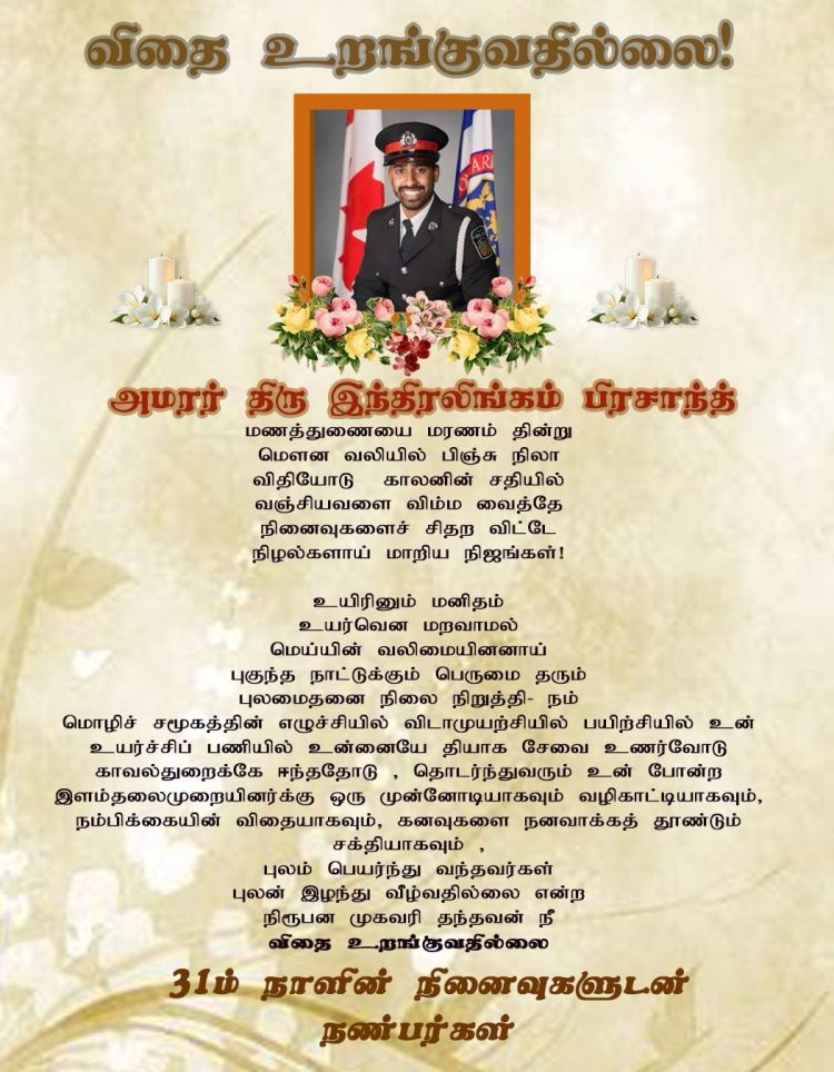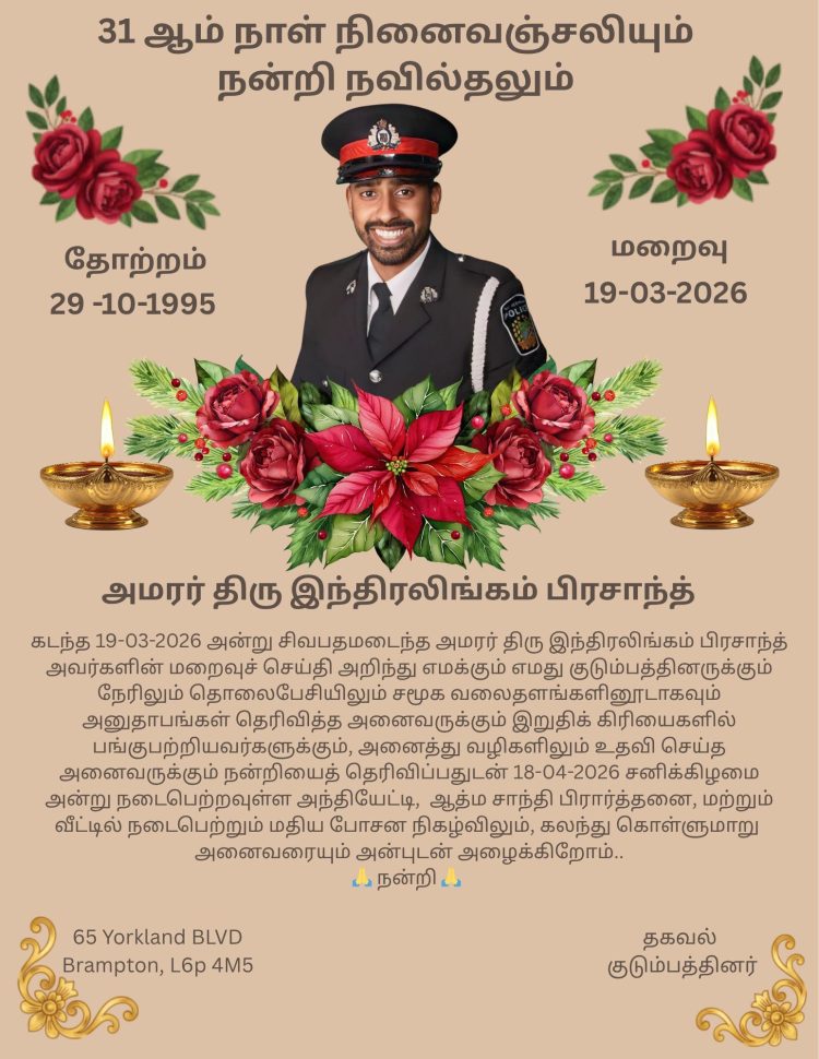 Uncategorized 31ம் நாள் நினைவஞ்சலி-அமரர் திரு இந்திரலிங்கம் பிரசாந்த் By admin - April 15, 2026 0 55 views Share FacebookTwitterPinterestWhatsApp