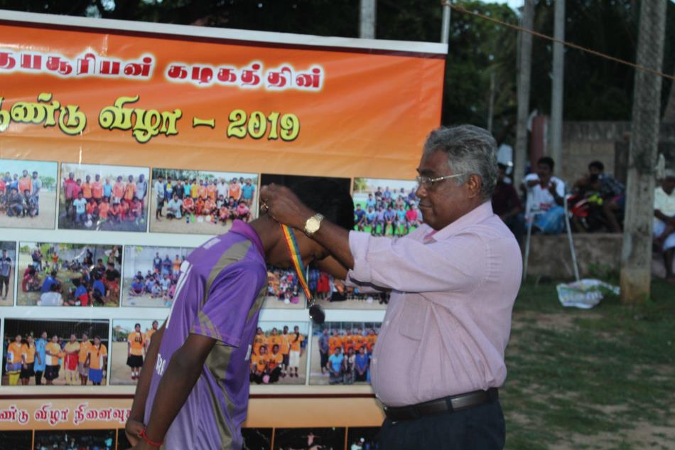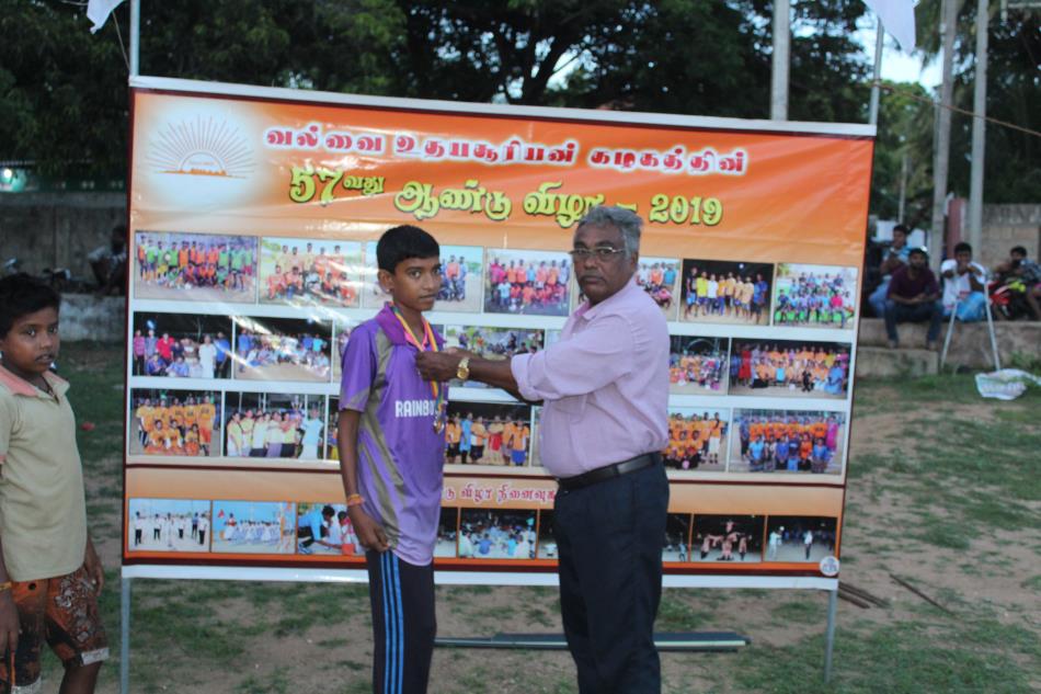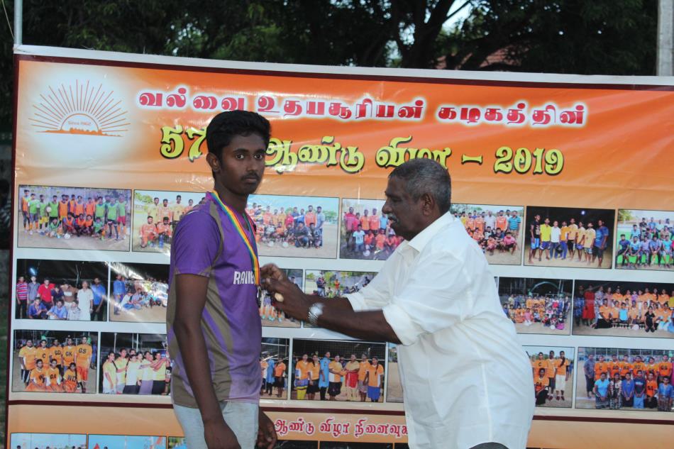 வல்வை உதயசூரியன் கழகம் நடாத்தும் வல்வைக்கு உட்பட்ட கழகங்களுக்கு இடையிலான 19 வயதிற்கு உட்பட்ட வீரர்களுக்கான 09 நபர்கள் கொண்ட மென்பந்தாட்டச் சுற்றுப் போட்டியின் இறுதிப் போட்டியும் பரிசளிப்பு வைபவமும் 12.10.2019 மாலை மாலை 4.00 மணியளவில் வல்வை றெயின்போ விளையாட்டுக் கழக மைதானத்தில் நடைபெற்றது.