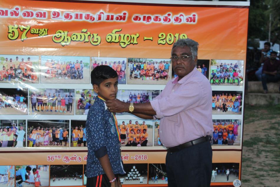 உதயசூரியன் கழகத்தின் தலைவர் திரு.மு.ஜெயதரன் தலைமையில் நடைபெற்ற இறுதிநாள் நிகழ்வுகளில் பிரதம விருந்தினர்களாக திரு.சி.சந்திரலிங்கம் (வல்வை புளூஸ் முன்னால் வீரர், உதயசூரியன் கழக உறுப்பினர்), திரு.சோ.கிருஸ்ணகுமார் (மூத்த உறுப்பினர், உதயசூரியன் கழகம்), திரு.பா.பிரதீபன் (தலைவர், வல்வை விளையாட்டுக் கழகம்) ஆகியோர் கலந்துகொண்டிருந்தனர்.