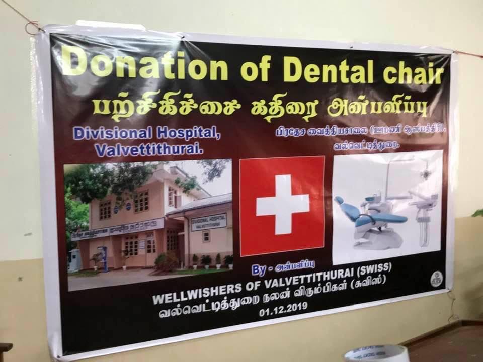வல்வெட்டித்துறை ஆதார வைத்தியசாலைக்கு சுவீஸ் வாழ் வல்வை மக்களால் பற் சிகிச்சைக்குரிய உபகரணங்கள் யாவும் அன்பளிப்பு செய்யப்பட்டு வைத்திய அதிகாரிகளிடம் உத்தியோக பூர்வமாக கையளிக்கப்பட்டது .